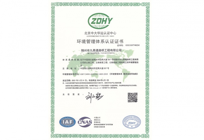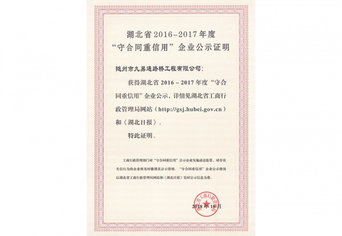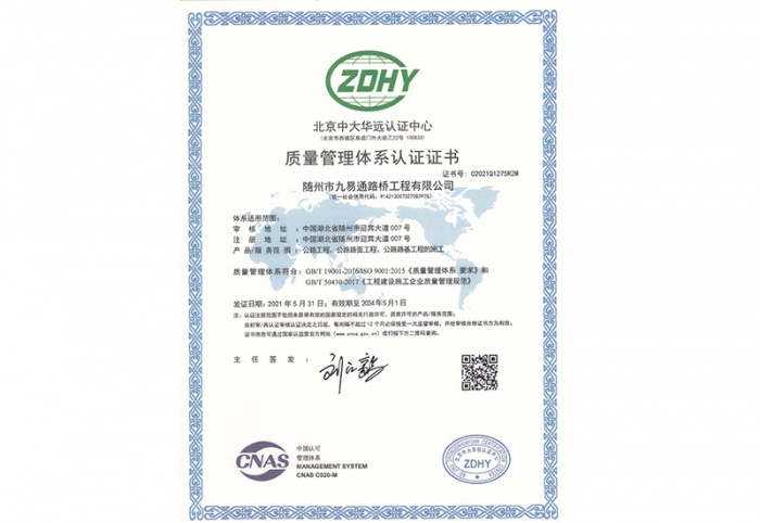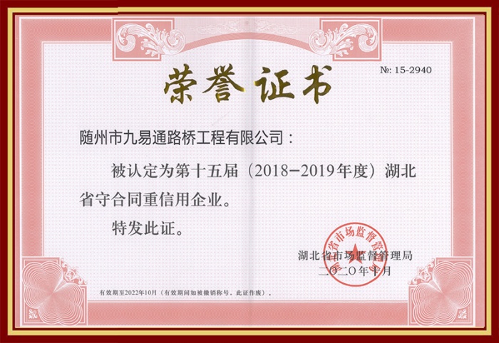 隨州市九易通路橋工程有限公司于2000年12月由原隨州市公路工程處改制組建,注冊資本金1億元,以公路工程施工為主導(dǎo)經(jīng)營方向,主要從事公路工程、市政工程施工、測繪、公路養(yǎng)護、工程機械設(shè)備租賃、農(nóng)墾整治等業(yè)務(wù),是隨州市唯一一家具備公路工程施工總承包壹級、公路路基和路面工程專業(yè)承包壹級資質(zhì)的企業(yè)。公司連續(xù)6年被省、市市場監(jiān)督管理部門授予“守合同重信用單位”,連續(xù)多年被湖北省交通運輸廳評定為公路信用評價“A”級企業(yè),被湖北省稅務(wù)部門授予“納稅信用A級證書”,先后通過了ISO9001質(zhì)量管理體系、ISO140001環(huán)境管理體系和GB/T28001職業(yè)健康安全管理體系認證。